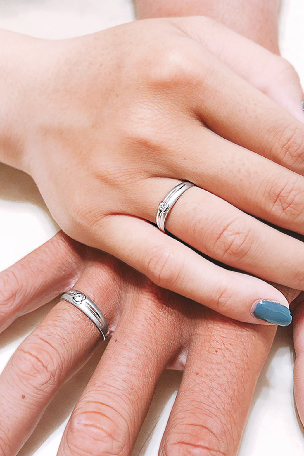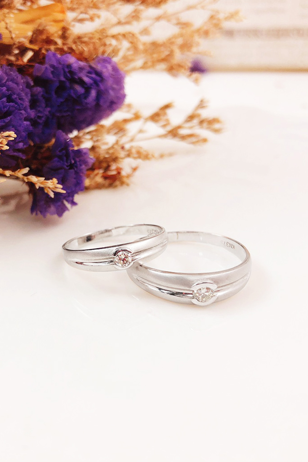 | 375K金 | 男款:戒寬0.5cm 真鑽0.13ct 戒圍#12-16 女款:戒寬0.4cm 真鑽0.08ct 戒圍#7-11 585K金/750K金/客製化尺寸需另估價 (以文具尺測量,些微誤差±0.5cm為正常值) 保養方式:以拭銀布擦拭即可 | 戒指一個 |
